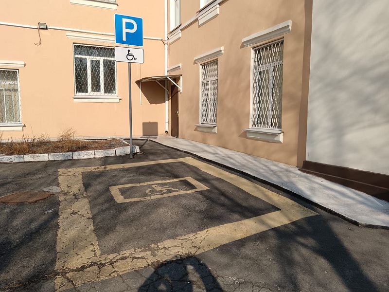 Расположение парковочного места и кнопка вызова для прохода в здание суда маломобильных групп населения: